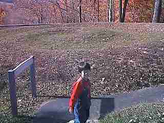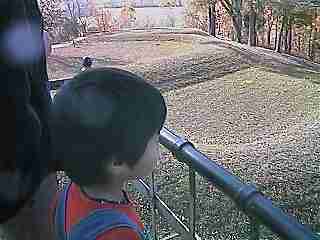 しっぽの部分はとぐろを巻いている。  このくねくねした山盛りの部分に遺体が埋葬されている  | Serpent Moundには大昔から死んだ人が埋められ、何層にも重なってこの山盛りの形状になっているそうだ。 この山盛り形状は約高さ1m弱だそうだ。 この古墳の形は、ミュージアムの看板のとおりに蛇の形をしていたが、展望台からでも見渡すのはかなりきつい。 このへびは、伸ばすと約400mにもなり、アメリカでも最大級とのこと。 STRANGE WORLDS AMAZING PLACESという本にも載っていた。 横を歩いているだけでは、知らなければ何だかわからない、丘というより単なる盛り上がりにしか見えない。 しっぽの巻いたところから、山の中へ入っていけるトレイルの入り口があった。 この古墳の周りを散策する道も整備されており(されていないと多分ふみつけられて、マウンドではなくなる?)、歩いていると、周りの森にはブルージェイ(鳥)など小動物があらわれた。 これを見るのに駐車場の入り口で入場料をとられたが、一応この古墳に関する簡単な説明や資料、模型を展示する博物館がついていたのでとりあえず納得。 今回は紅葉が散った後だったが、紅葉のシーズンはきっときれいだろう。 ただし、仁徳天皇陵とは比較しないで ! |